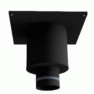 Aansluitstuk incl. afwerkrozet 130/180 is donker antraciet hittebestendig gespoten en past op dubbelwandige rookkanalen met een binnendiameter van 130mm & 125mm en een buitendiamer van maximaal 210mm. Bijvoorbeeld: STB, Ritevent, Metalotherm, Poujoulat, etc. De dubbelwandige pijp zakt 150mm door het plafond in het aansluitstuk. Het vierkante rozet is 300x300x15mm. De enkelwandige zijde van het aansluitstuk heeft een diameter van 130mm.