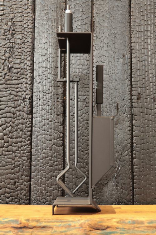 Dit mooie en praktische haardstel van Janco de Jong bestaat uit een tang en een pook/blaaspijp. Deze hangen in een stabiele staander waarin aan de achterzijde de asschep (standaard geleverd bij iedere JAcobus houtkachel) kan staan. Uniek is de pook, die niet alleen als pook gebruikt kan worden, maar waar je ook doorheen kunt blazen om het vuur aan te wakkeren.
