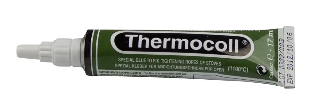 Keramische afdichting tussen deur en kachel. De set bestaat uit 4st afdichtingen op de juiste lengte en een tube hittebestendige lijm.Download hier de montage instructies "koord plakken"